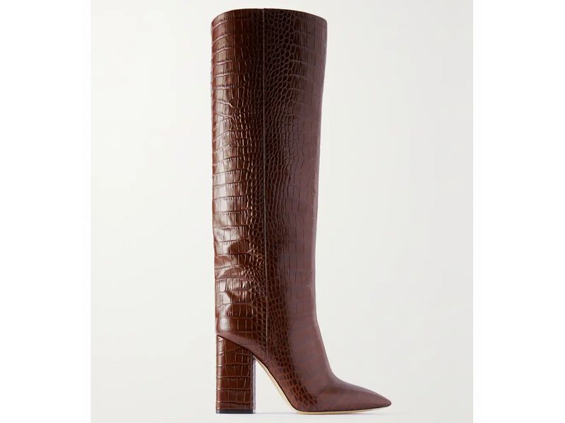 تُعتبر الأبوات الطويلة بِكعب عريض وعالي، قِطعًا مثالية لتُنسّقيها مع كل من التصاميم القصيرة ومتوسطة الطول، وهي الأكثر كلاسيكية ضمن هذه المجموعة، ولكن هذا لا يعني أنكِ لا تستطيعينَ تجربة الألوان والأقمشة الجديدة. صُنع بوت ’Garder‘ من Manolo Blahnik، وهو قطعة حصرية لـNET‑A‑PORTER، من المخمل الفاخر، بينما تُقدّم Saint Laurent تصميمًا مشابهًا صُنع من البلاستيك بلون أسود لامع. بالطبع، لن تكتمل أي تشكيلة أبوات في عام 2023 دون إضافة من علامة الأحذية المصنوعة في إيطاليا Paris Texas، والتي حقّقت نجاحًا مذهلًا منذ إطلاقها في عام 2015. ويأتي بوت ’Anja‘ من هذه العلامة بنقشة جلد التمساح المذهلة بلون بنّي شوكولاتة، ومن المؤكد سيتم إضافة هذا التصميم لقوائم أمنيات مُتابعي العلامة الأوفياء لموسم الخريف.