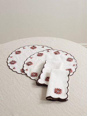 "أنا دائمًا مُعجَبةٌ باختلاط الطبعات والألوان، ولكننا قد قُدِمنا مؤخرًا بطرح مجموعة جديدة من سجادات الطاولة على شكل سحابة ذات حواف مُتموجة بألوان رقيقة مع مناديل قماشية مُتَناسِقَة، تبدو فريدة وتضفي تركيزًا أكبر على المكان الذي تتواجدين فيه. لقد استخدمنا النسخة ذات اللون الزمردي لغداءٍ في Serra في Passalacqua، حيث أضفى اللون الأخضر في الأقمشة لمسة سحرية مع كل الخضرة المحيطة ببحيرة Como ... وكان التأثير خفيفًا ورومانسيًا تمامًا. نعم، أحيانًا يمكنني أن أكون بارعة ودقيقة!"