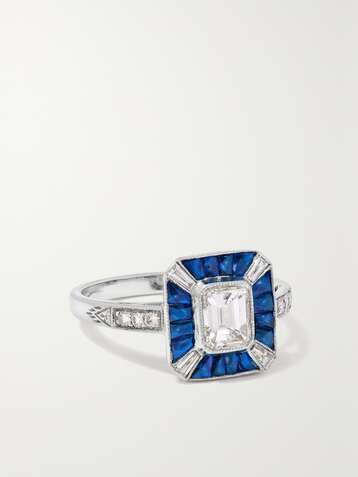 خاتم من الذهب الأبيض والياقوت الأزرق والألماس