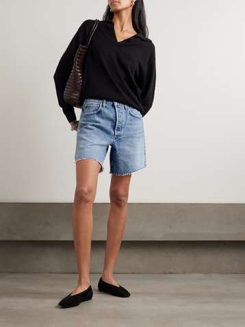 شورت Ayla من الدنيم بحواف منسّلة