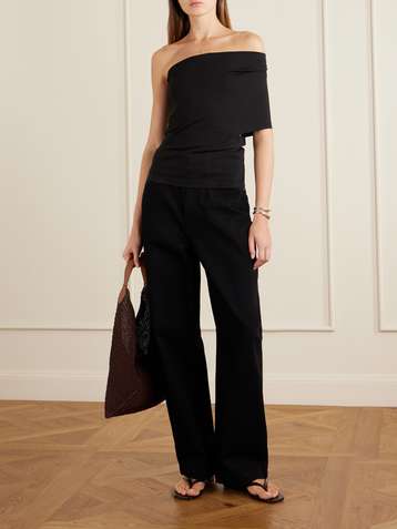 تي شيرت بقصّة غير متماثلة من مزيجٍ من قطن الجيرسي