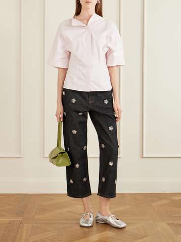 بنطال جينز بأرجلٍ مستقيمة وزخرفة
