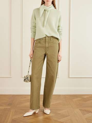 بنطال جينز بأرجل مستقيمة وخصرٍ عالٍ