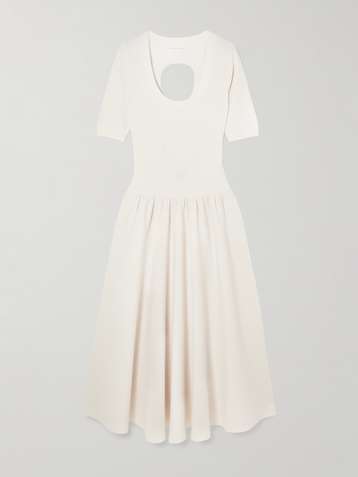 فستان Melie متوسّط الطول وبتأثير مزموم من قماش البوبلين القطني العضوي بثنيات وقطع محاكة بجانب بعضها البعض