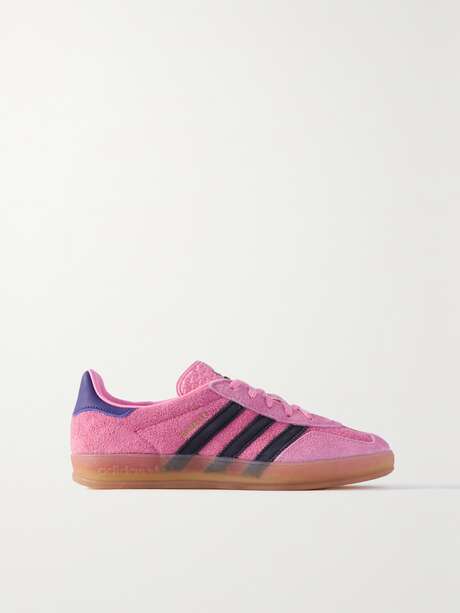 أطلقت adidas Originals حذاء سنيكرز 'Gazelle Indoor' في بداية السبعينات كحذاء رياضي داخلي لكنّ تصميمه تطور منذ ذلك الحين ليغدو قطعة أساسية شهيرة في عالم ستريت ستايل. وهذا الإصدار مصنوع من جلد السويد باللون الزهري النابض بالحياة مع خطوط من الجلد الناعم ونعلٍ مطاطي شفاف.