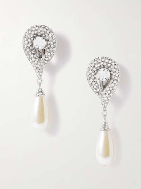 ALESSANDRA RICH أقراط بمشبك كبّاس من معدن فضّي اللون وكريستال ولؤلؤ صناعي