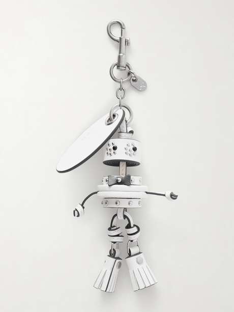 ANYA HINDMARCH تميمة حقيبة Groom من الجلد ومعدن فضي مزين بمسامير