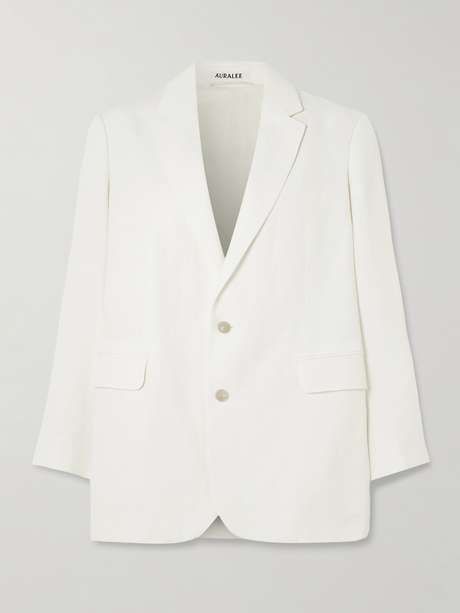 AURALEE بليزر فضفاض من قماش أوكسفورد من مزيجٍ من القطن والكتان والصوف