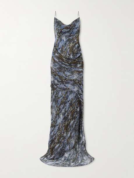 CHRISTOPHER ESBER فستان سهرة درابيه من حرير الشيفون بنقشة الثعبان مع ظهر مكشوف