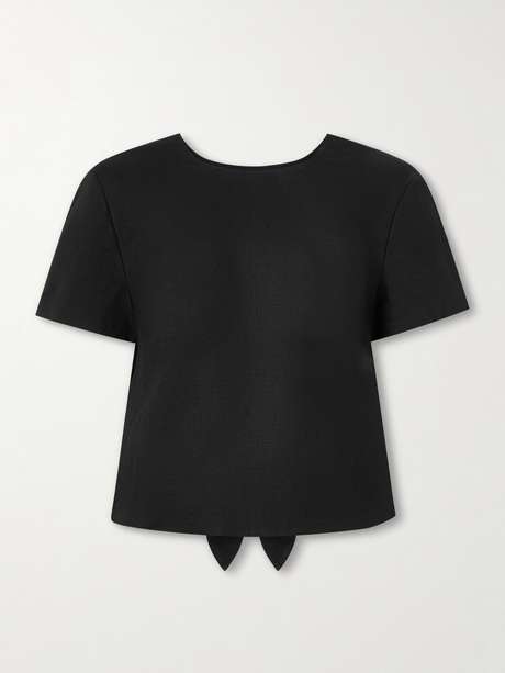 CULT GAIA بلوزة Safa من الكتّان بظهر مكشوف مزين بربطة بشكل فراشة