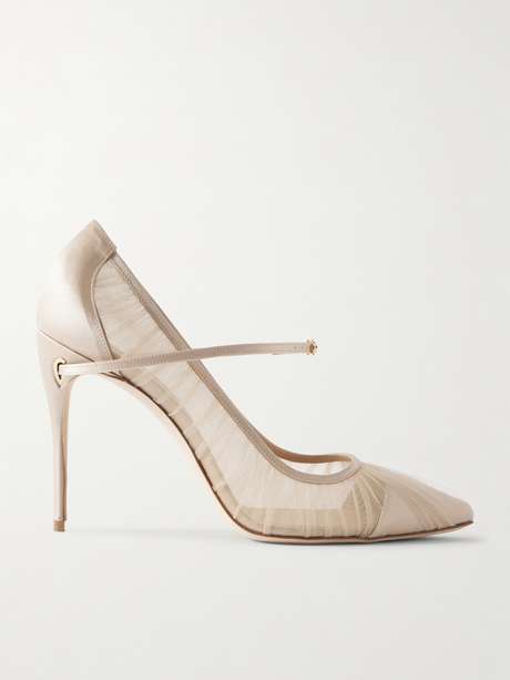 JENNIFER CHAMANDI حذاء بامب Lorenzo من التول بكسرات وحواف من الساتان مع كعب بارتفاع 105 مم