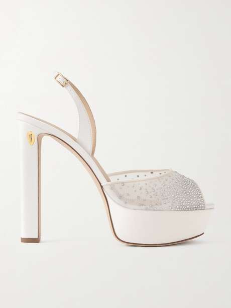 JENNIFER CHAMANDI صندل Antonio بنعل سميك من الشبك مزين بالكريستال مع حواف من الساتان بكعب 130 مم