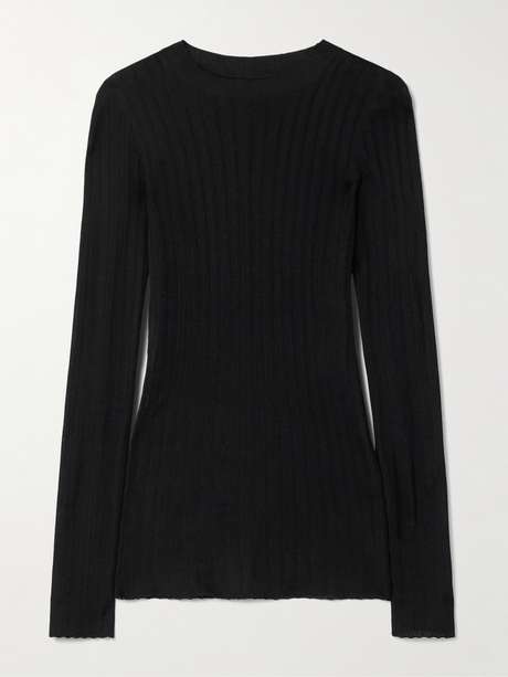 سترغبين بارتداء بلوزة 'Elm' من توقيع KHAITE في الكثير من المناسبات. تتميز بتصميم مسترخي وسهل التنسيق، وهي مصنوعة من مزيج الصوف والحرير بحبكة مضلّعة لمقاس ضيق ومرن. يُمكنكِ تنسيقها مع كل شيء من بناطيل الجينز إلى التنانير الجلدية.