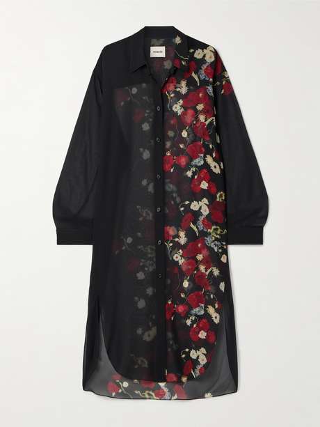 تقدّم علامة KHAITE فستان 'Gloria' المزيّن بأنماط أزهار متباينة. يتسم بقصة واسعة من حرير شيفون شفاف ويأتي مع بطانة داخلية قابلة للفصل. ارتديه لوحده أو مع جينز.