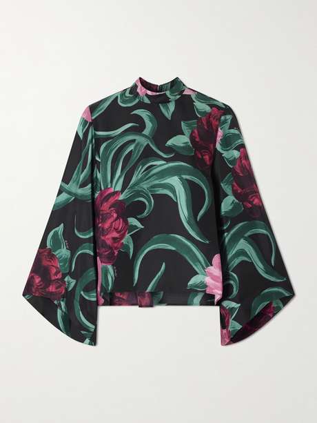 LA DOUBLEJ بلوزة Make An Exit من حرير التويل بطبعات الزهور