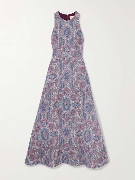 MARTA FERRI فستان متوسط الطول Colonna من الكتان مزين بطبعات