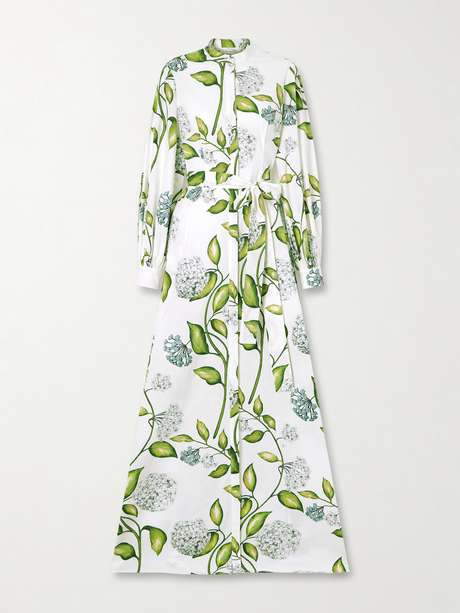 OSCAR DE LA RENTA فستان من قطن البوبلين بطبعة الأزهار مع حزام