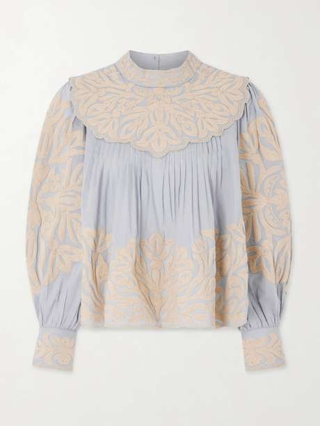 SEA بلوزة Alexandra بثنيات من قطن الفوال المطرّز