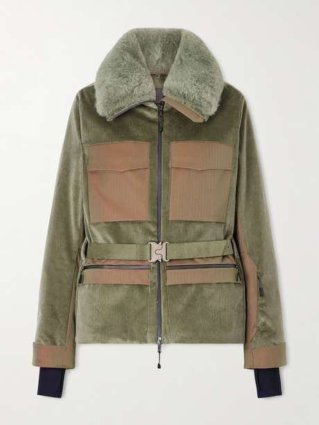 SEASE جاكيت تزلج Altai من مزيج القطن والمخمل المضلّع والزغب بحاشية من قماش مخملي