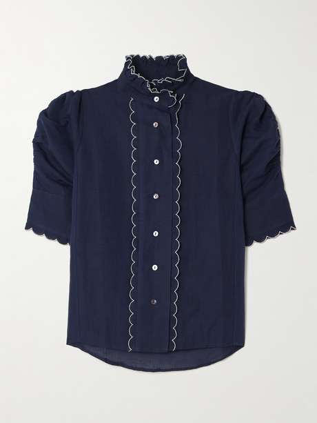 THIERRY COLSON بلوزة Vita من مزيج الكتان والقطن بتأثير مزموم وحواف متموجة