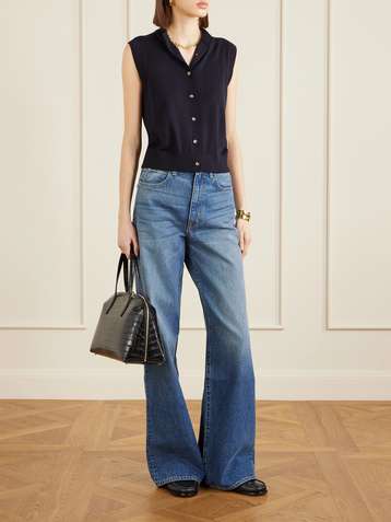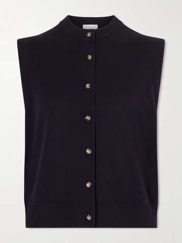 بلوزة بدون أكمام بياقة طويلة من مزيج الصوف والكشمير