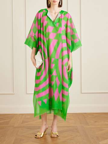 قفطان من قطن الفوال بطبعات وحواف منسلة