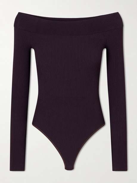 ALAÏA بودي سوت بحبكة مضلعة وكتف متدلي