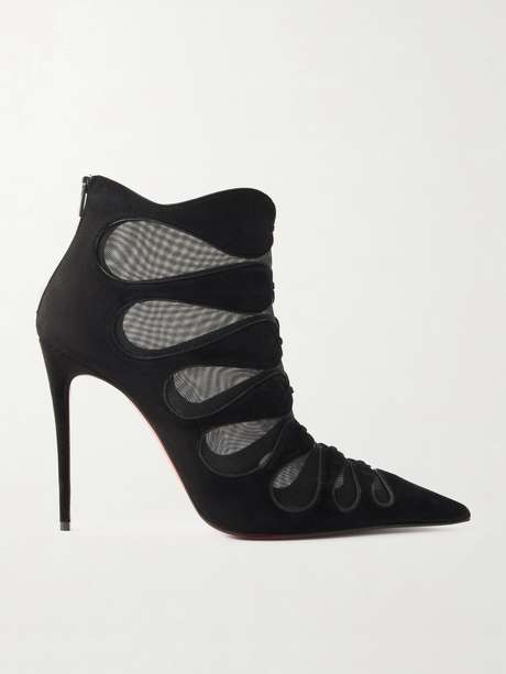CHRISTIAN LOUBOUTIN بوت Circus Max بطول الكاحل من الشبك وجلد السويد بكعب 100 مم