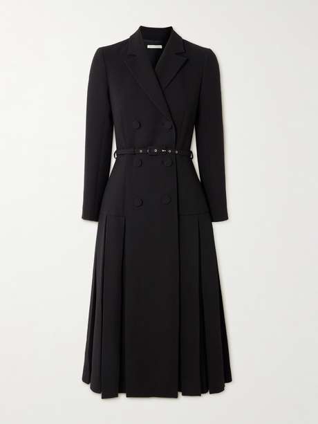 Emilia Wickstead's 'Chaney' dress combines elements of classic tailoring with feminine details. Made from substantial wool-crepe in a double-breasted silhouette, it has notch lapels and falls to a swishy, box-pleated skirt. Cinch the tonal belt to define your curves.