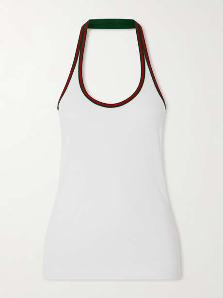 GUCCI بلوزة بدون أكمام مخططة بياقة هالتر الدائرية من مزيج قطن الجيرسي المضلّع
