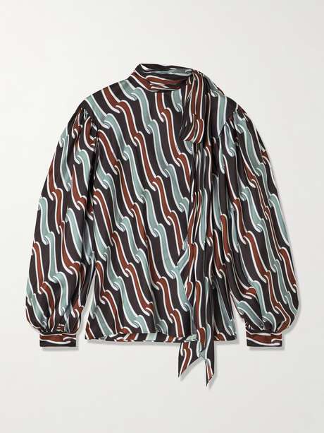 GUCCI بلوزة من حرير جاكار مطبوع بتأثير مزموم مع أربطة