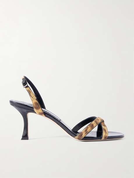 JIMMY CHOO صندل Elsy بحزام خلفي من وبر العجل بطبعة جلد الفهد بكعب 70 مم