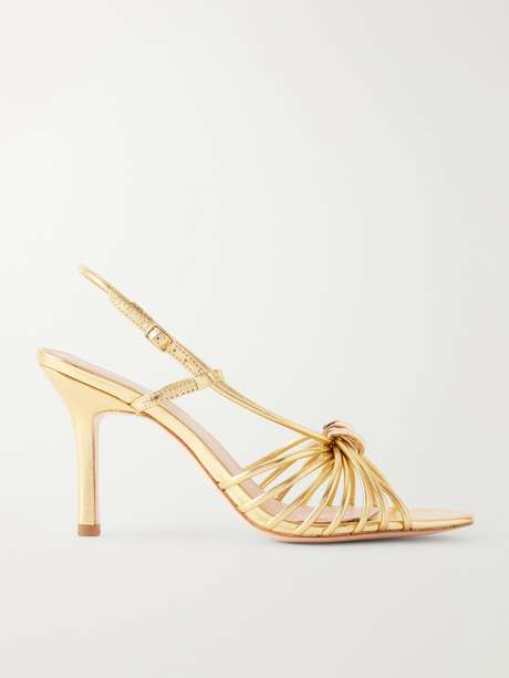 Whether you’re heading to a dinner date or an aperitif with friends, Loeffler Randall’s "Mareka" slingback sandals suit both. Crafted from metallic gold leather, they feature an open toe framed by slender straps and a gold-tone embellishment, set on 100mm heels for added lift.