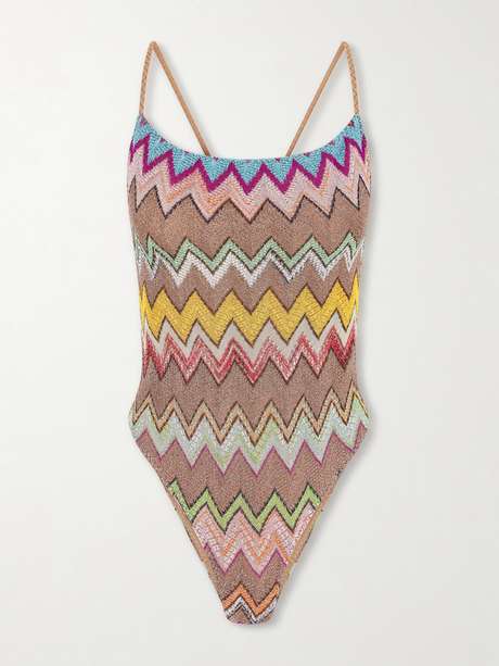 MISSONI لباس السباحة Mare من نسيج بحبكة الكروشيه مخطط بلمعة معدنية