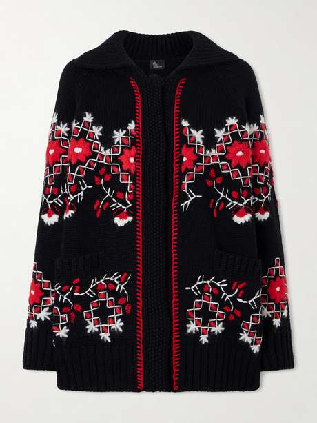 MONCLER GRENOBLE كارديغان واسع القياس مطرّز من مزيجٍ الصوف