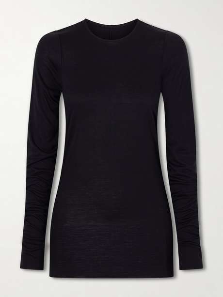 Rick Owens’ T-shirt is crafted in Italy from stretch-infused jersey for a comfortable feel. It’s designed with elongated sleeves and a longer hem that enhances its proportions. Style it with flared pants or a maxi skirt.