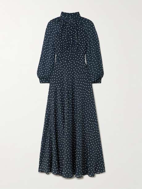 RIXO فستان Paige متوسط الطول بياقة مستديرة من الشيفون والحرير بنقشة البولكا دوت مع حزام