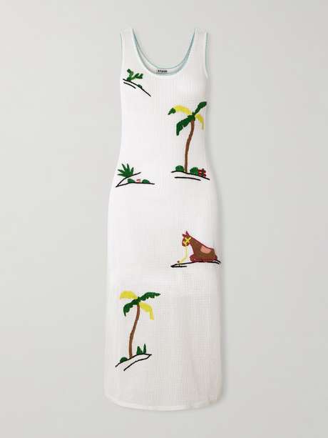 STAUD فستان متوسط الطول Luma من القطن بحبكة مفتوحة مطرّز