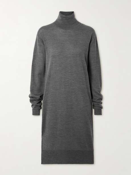 يتميز فستان علامة TOTEME بتصميم يوازن بين الأسلوب الراقي وسهولة الارتداء. صُنع من مزيج يُعانق منحنياتكِ من الحرير والصوف، ويأتي بياقة عالية وأنيقة وبحواف مضلعة وبفتحة عند الجانب. نسقيه مع الكعب الرفيع.