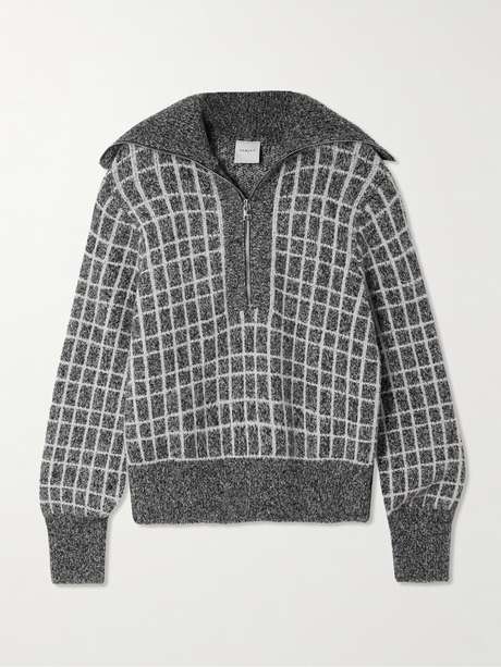 VARLEY كنزة Furley بسحاب نصفي من مزيج القطن بحبكة بوكليه مزينة بنقشة المربعات