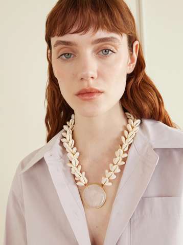 عقد Granada من معدن مطلي بالذهب والعظم والفيروز والخرز
