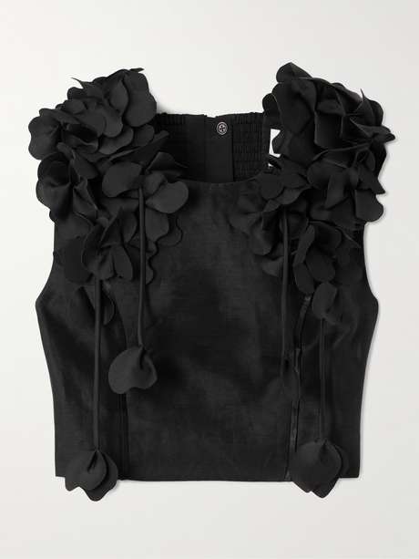 تستخدم Aje زخارف أزهار في تصاميمها، فتضفي عليها لمسةً عصرية تفيض أناقةً. صُنعت بلوزة 'Camille' هذه من مزيج الكتان بقصة ضيقة وتزدان برُقع أزهار زخرفية تشكّل تأثيراً رائعاً ثلاثي الأبعاد على امتداد الأكتاف. نسّقيها مع التنورة المطابق وصندل لتظهري بإطلالة مسائية رائعة.