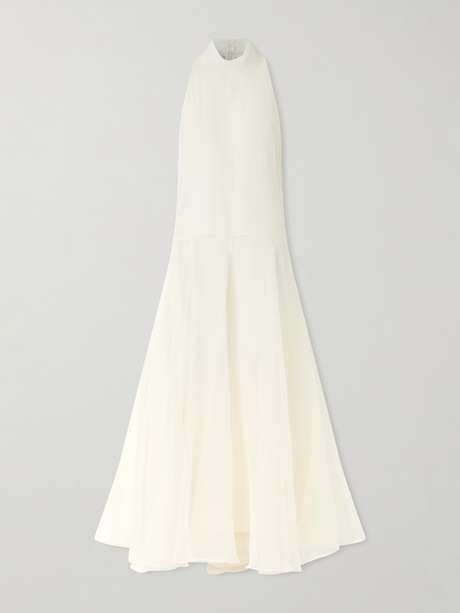 BRUNELLO CUCINELLI فستان طويل من الحرير بياقة هالتر الدائرية