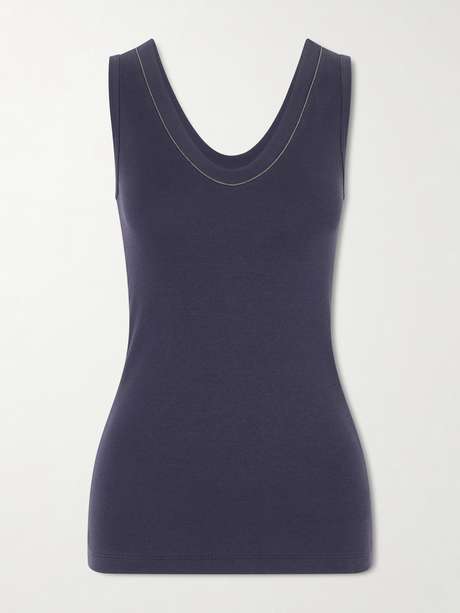 BRUNELLO CUCINELLI بلوزة بدون أكمام من مزيجٍ من قطن الجيرسي المضلّع مزينة بالخرز