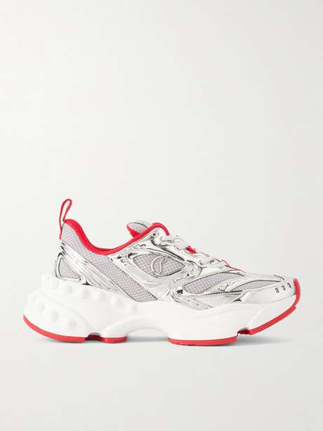 CHRISTIAN LOUBOUTIN حذاء سنيكرز So Flo من الشبك بحواف من الجلد بلمعة معدنية