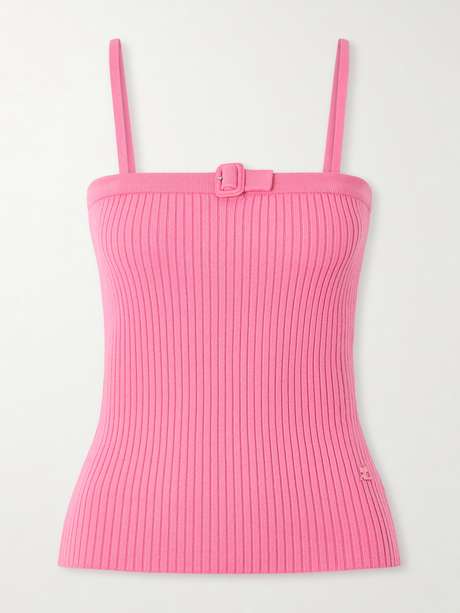 COURRÈGES بلوزة بدون أكمام من نسيج محبوك مضلّع بإبزيم