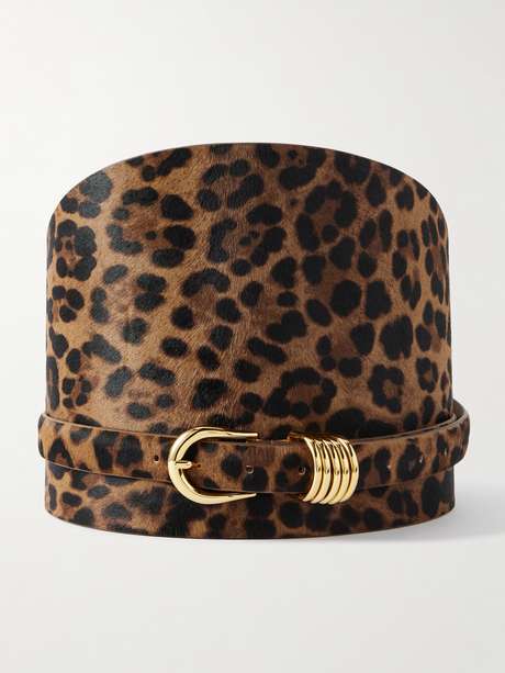 صُمّم هذا الحزام من Déhanche ليُلبس عند الخصر، ويأتي بقصّة عريضة تمنحك شكلاً يشبه الساعة الرملية بطريقة مثالية. وهو مصنوع من وبر العجل بطبعة جلد الفهد ومزود بإبزيم ذهبي اللون وخمس حلقات مميزة للعلامة بدلاً من الحلقة التقليدية، ليضفي لمسة جريئة وفاخرة على أي إطلالة.