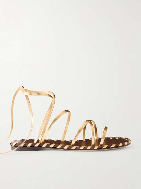 GIANVITO ROSSI صندل من الجلد بأربطة ولون معدنية
