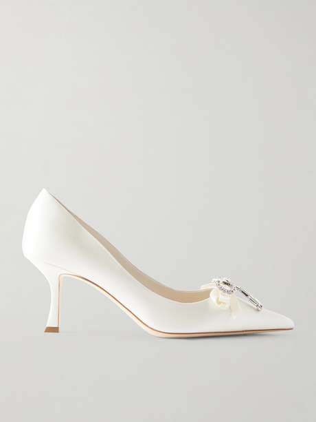 JIMMY CHOO حذاء بامب Aura من الساتان مزين بربطة فراشة وبالكريستال وبكعب 70 مم