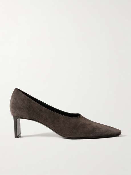 تولي علامة KHAITE اهتماماً خاصاً للأسلوب المينيمالي الذي لا يحده الزمن والحرفية عالية الجودة لتصميم أحذية البامب 'Cecilia'. صُنع حذاء البامب هذا من جلد السويد المرن، ويأتي بمقدمة مدببة ضيقة ومزود بفتحات عالية عصرية. كما أنه يتميز بالكعب العريض بارتفاع 50 مم مما يُعزز طابعه الهندسي.